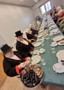 Peo väga oluline osa oli pikk söögilaud. Loomulikult ei puudnud sealt mulgi korbid. Toitlustajaks Mustla kohvik.