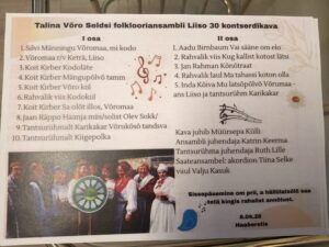 Nii sis laulsõmigi S. Männingu laulu „Võromaa, mi kodo“. Järgmidse lauluga tull rahvalõ selges tetä, kost Liiso hindäle nime sai, vai tõisildõ üülden laulda R.Ritsingu säetü rahvalaulu „Keträ , Liiso“.