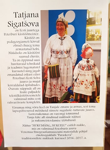 Võrumaa Keskraamatukogu lasteosakonnas Jüri tn 54 Võrus, on alates 27.05.2020 avatud Peterburi Eesti Kultuuriseltsi liikme Tatjana Sigacheva käsitööna valminud nukunäitus «Nukumäng, nuku elu».